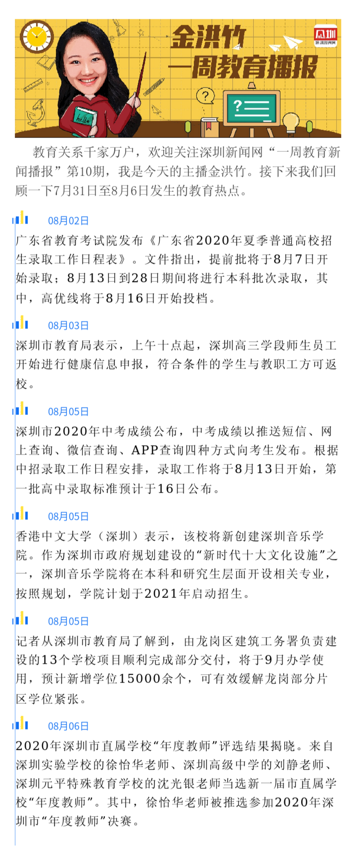 一周教育播报|第10期:深圳公布中考成绩 “年度教师”评选揭晓
