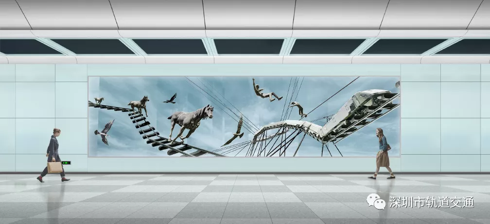 该站的文化艺术墙采用钢化玻璃和不锈钢喷漆,通过材质的特性,呈现出自然变化的形态,不同环境下不同的形态美。