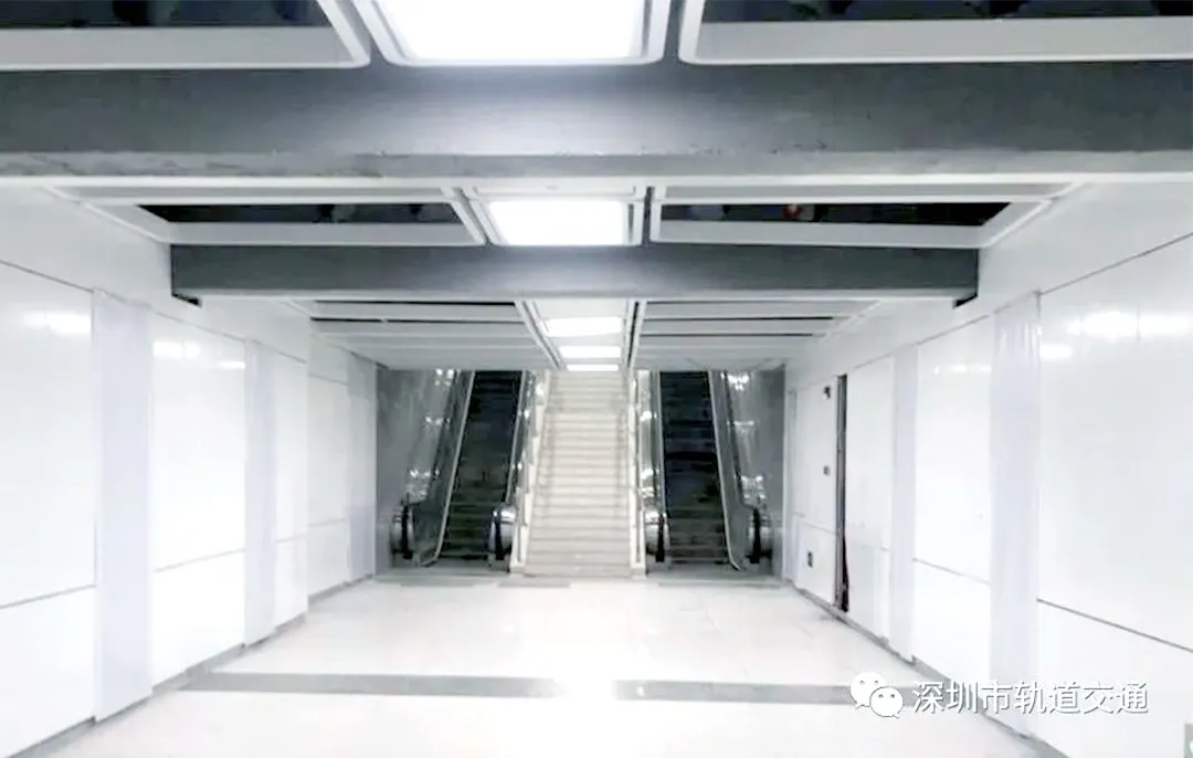 岗厦站沿规划彩田路敷设,车站为地下三层岛式站台钢筋混凝土箱形框架结构。该站共设出入口4个:E口、F口、C口、D口。