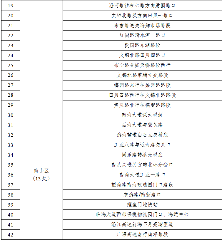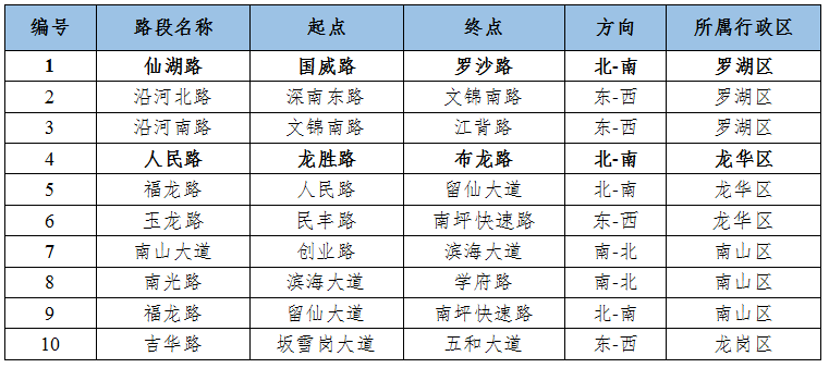 预计台风季工作日早高峰时段十大易堵路段主要集中在罗湖、南山、龙华、龙岗区,其中,罗湖区仙湖路(国威路-罗沙路)、龙华区人民路(龙胜路-布龙路)等路段受降雨影响拥堵恶化较明显,预计早高峰时段路段通行时长较普通工作日多花费30%左右。