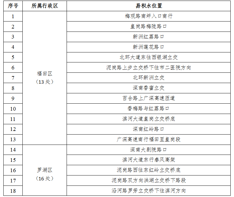 根据深圳市气象局等权威部门发布的易积水路段汇总信息,深圳全市范围暴雨天气易积水路段如下,其中,东环一路、新洲路、文锦北路等路段周边积水相对密集,请市民朋友小心留意,注意安全。