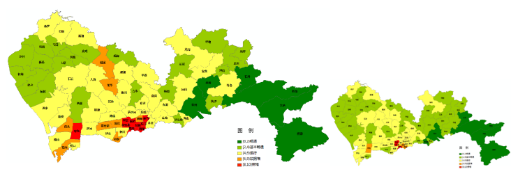 图3 预计台风季工作日(左)、普通工作日(右)晚高峰全市主要街道交通运行状态图