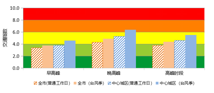 图1 预计台风季工作日全市及中心城区交通指数与普通工作日对比