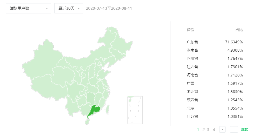 从“高考择校助手”的用户IP访问地址来看,来自广东省的用户数量最多,占了总访问量的71.63%。接下来的访问量排名靠前的依次是湖南、四川、江西、河南、广西、湖北、北京、江苏的用户。