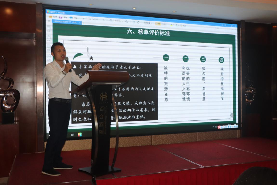 中国最美县域榜单融媒体主任李帅向与会嘉宾介绍中国最美县域榜单,并希望各地认真践行“绿水青山就是金山银山”发展理念,建设“最美县域”,共圆“美丽中国”梦。