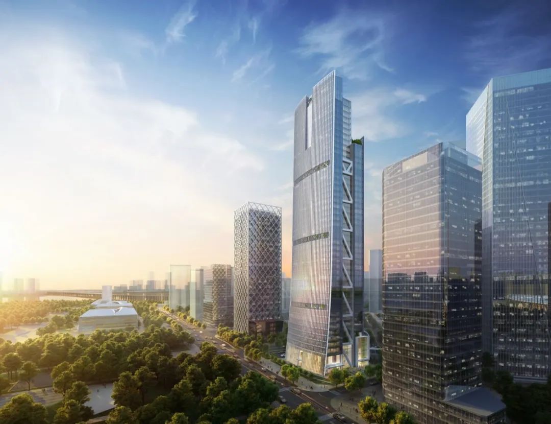 项目坐落于宝安中心区,塔楼整体采用了流线化的锥体造型,辅以结构元素作为立面肌理,垂直线条和自下而上逐渐收分的曲线相结合,形体优雅大方,富有活力,既可保证办公布局的高效性,又能满足让塔楼主导天际线的设想,充分体现世界领先卫星科技企业的创新精神。