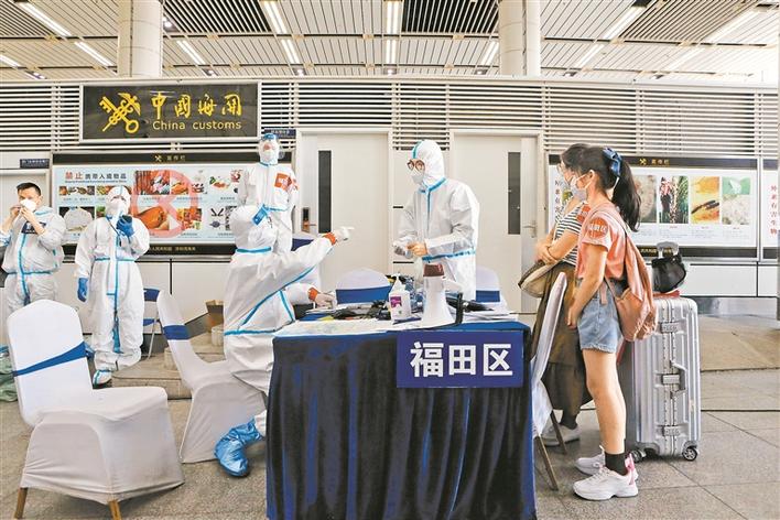 深圳湾口岸,按规定需要集中隔离医学观察的入境旅客在工作人员的带领下分区搭乘巴士前往隔离点。(来源:深圳特区报)