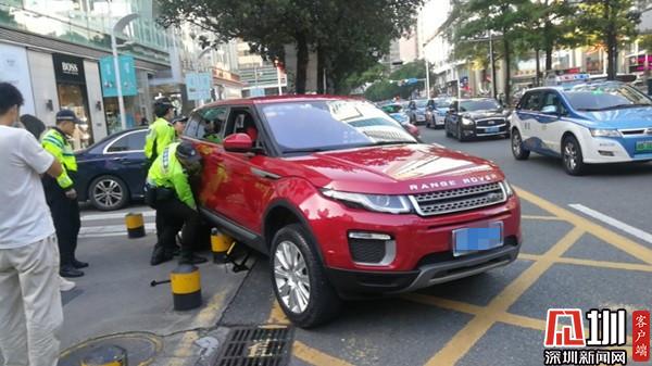深圳新闻网讯(见圳客户端、深圳新闻网记者 郭含笑 通讯员 罗佰娇)10月3日16时40分左右,正在罗湖区金光华路段开展整治行动的交警遇到一名女士求助,称车子卡在停车场出口的石墩上。经了解,当事司机驾车从金光华地下停车场驶出准备进入主路时,因避让电动车一时着急向右打满方向,导致车辆撞到停车场出口的石墩,现车子卡在石墩中间。