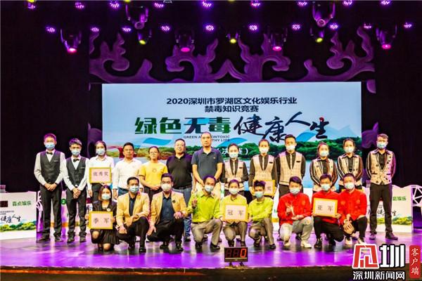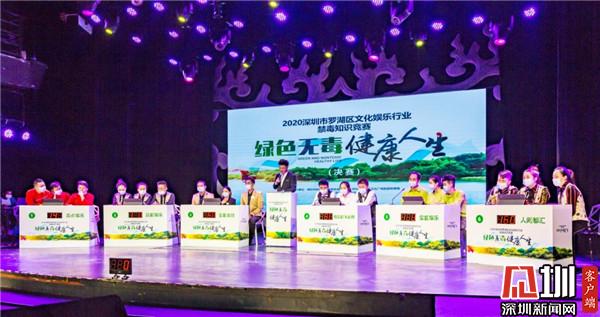 10月15-21日,罗湖区开展文化娱乐行业禁毒知识竞赛,采用团队竞技的形式,结合场所应知应会的禁毒知识和禁毒工作实际,通过笔试、现场必答、抢答、情景问答、观众有奖问答等环节,融趣味性、竞争性和实用性于一体,不但激发从业人员集体荣誉感,也让禁毒知识入心入脑。本次知识竞赛共有53家辖区歌舞娱乐单位组队参赛,经过激烈的预赛和决赛,最终堂盛娱乐荣获冠军,喜点娱乐荣获亚军,皇室派对荣获季军、钱柜音乐、凯丽娱乐、人间都汇荣获优秀奖。