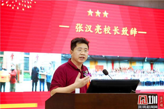 在致辞中,布心中学校长张汉亮表示,布心中学建校31年来,教师团队逐步成长,这里有全国优秀教师、南粤优秀教师、众多市区级优秀教师、区功勋园丁及各类名师,更有一批尽职尽责、无私奉献的党员教师、先进教师。"只要心中有梦想,把握每一次机会,就能不断进步,不断发现自己的潜力,超越自我!"张汉亮表示。