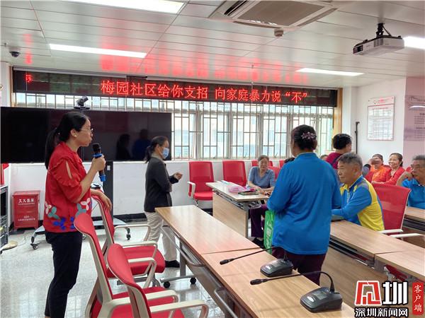 见圳客户端·深圳新闻网11月25日讯(记者 刘嘉敏 通讯员 梁嘉丽 张亮亮)每年的11月25日也被称为“国际消除家庭暴力日”,随着时代的发展,大家对家暴的认知,不只是普遍认知的身体虐待,更多的是关注,情感的冷遇和言语的辱骂所带来的伤害。怎样才是对待亲人的合适方式?学会向家庭暴力说“不”,社工给您支招。11月24日下午,在深圳罗湖区清水河街道梅园社区党群服务中心开展了一场“反家暴”宣讲活动,预防和制止家庭暴力,保护家庭成员的合法权益。