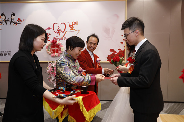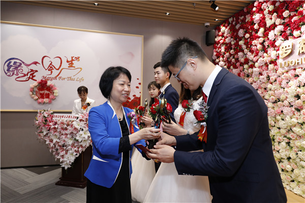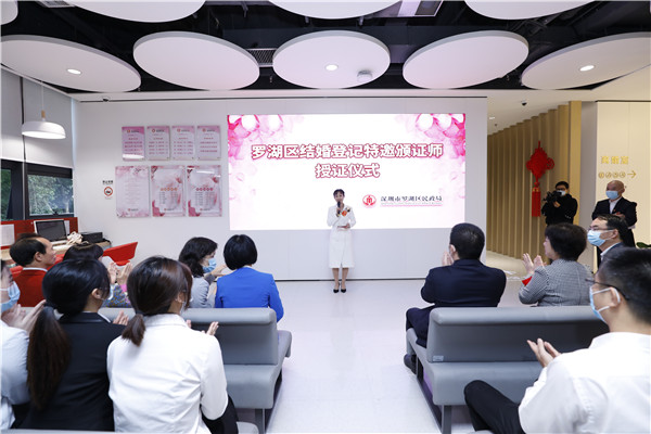 据悉,结婚登记颁证仪式是罗湖区民政局为了推崇简约适度、文明向上的婚俗礼仪,倡导健康家庭伦理、婚姻文化、文明婚俗,培育好家风、传承好家风,为结婚新人提供的免费服务。