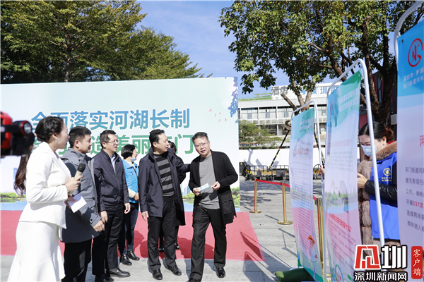 见圳客户端·深圳新闻网12月31日讯(记者 刘嘉敏 通讯员 马志文)在深圳市罗湖区东门街道的河湖边,有这样一群人的身影常出现:他们围绕着河湖走动,详细地观察着周边环境,遇到垃圾及时捡起,发现问题立即记录,他们就是东门街道辖区内各河湖的河湖长。为加大全面推行河湖长制的宣传力度,12月31日,由东门街道主办的“全面落实河湖长制,全力打造美丽东门”活动举行。罗湖区水务局局长张文,东门街道总河长、东门街道党工委书记吕毅,东门街道副总河长、东门街道办主任喻强出席活动。