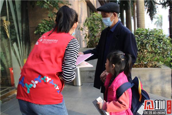 见圳客户端·深圳新闻网1月18日讯(记者 刘嘉敏 通讯员 刘祖溶 韦泓菱)春节是中国人最重视的节日,往年,一到春节深圳市民纷纷回老家过年,今年,新冠肺炎疫情防控依然不可放松。1月15日下午,深圳市罗湖区桂园街道老围社区在辖区名仕阁小区开展2021年首场义工外展活动,义工与社工一起向过往行人发放《留深过年倡议书》,呼吁社区居民留在深圳,守望相助,共同抗疫。