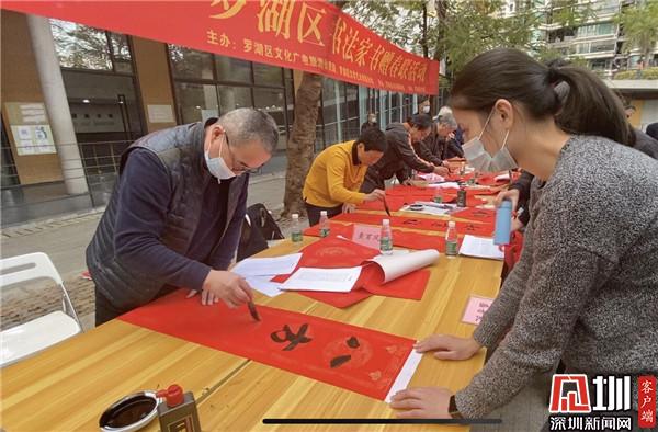见圳客户端·深圳新闻网1月20日讯(记者 刘嘉敏 通讯员 于延丰)新春将至,1月19日,由罗湖区文化广电旅游体育局、罗湖区文学艺术界联合会主办,罗湖区书法家协会承办,罗湖美术馆协办的“送福迎春”——罗湖区书法家书赠春联活动在罗湖美术馆南广场举行。