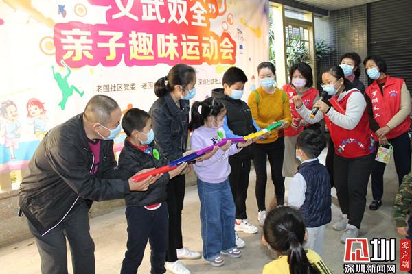 见圳客户端·深圳新闻网2月1日讯(记者 刘嘉敏 通讯员 杨纪欧)今年过年不回家,要玩就在社区玩。“引球入洞”“小蝌蚪找妈妈”“凌波微步”“宝宝指路”这些又好听又好玩的游戏,是罗湖区桂园街道老围社区党群服务中心的社工为社区居民精心准备的。1月30日上午,社区为鼓励社区居民留深过年,专门开展了一场“文武双全”亲子趣味运动会,吸引了众多小朋友及其家长,12对亲子来到现场。