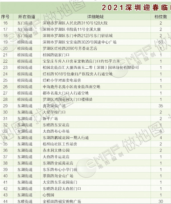 罗湖区共开设近500个花市铺位,遍布全区10个街道,近40个社区。同时,罗湖区还特别制作了花市地图,最大限度的方便市民就近购花。