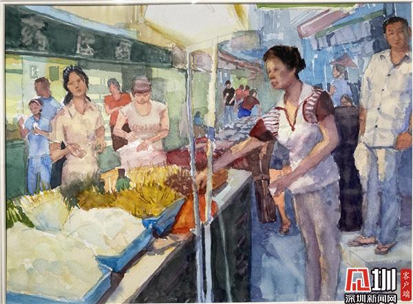 据了解,《东门这地方》展览以东门景观为题材,创作者中不乏地地道道的东门原住民,通过艺术画作的形式诠释和表达东门的历史文化。出生在东门,求学也在东门的张跃仑在接受记者采访时表示,因为自己就是土生土长的东门人,所以对东门的感情深厚,希望通过类似活动,来实现“本土文化的本土表达”,也希望能引起许多老深圳人对东门的回忆,让更多人认识东门的格局。其中他提到,此次画展的亮点增加了不少画家在去年疫情的时所作的作品,以自己的所见所闻,表达对东门生活的新认知。