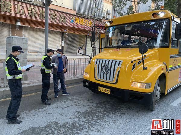 继2月19日罗湖大队开展校车大体检后,为做好开学首日交通安保工作,罗湖大队广布警力保驾护航。一大早,深圳交通警察局局长徐炜在罗湖交警大队大队长蹇晓卫的陪同下到罗湖辖区检查各项交通管理工作的落实情况。深圳交通警察局副局长王亚飞带领科技处科研所所长张欣来到罗湖辖区,在罗湖交警大队副大队长曾品的陪同下先后检查了东门翠竹、东门爱国执勤点,一起开展整治工作。罗湖交警科学布警,高效运作,严查违法隐患车辆,确保辖区交通安全、畅顺。
