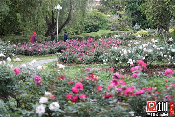 深圳人民公园,是以月季花为主题的综合性公园,也是中国月季协会南方唯一的月季中心,公园里有三百多个品种,五万多株月季花,被世界月季协会联合会(WFRS)评为中国首个“世界月季名园”。