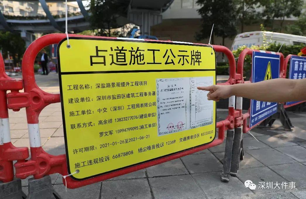 据深圳市交通运输局盐田管理局设施管理科副科长张赛英介绍,目前要求新增加的占道施工项目都要按照《指引》制作并张贴公示牌,主要是目的有两个——