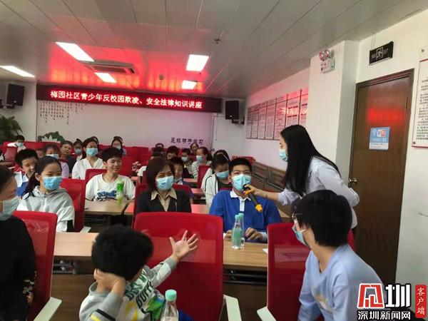 见圳客户端·深圳新闻网3月13日讯(记者 郭含笑 实习生 覃钰清 通讯员 麻秀芳)为进一步增强青少年的法律安全意识,深圳市罗湖区清水河街道梅园社区党委围绕庆祝中国共产党成立100周年的主题开展了系列学习教育活动,于2021年3月13日上午在社区多功能室开展了青少年反校园欺凌、安全法律知识宣讲活动,现场吸引了社区20组亲子家庭的踊跃参与。