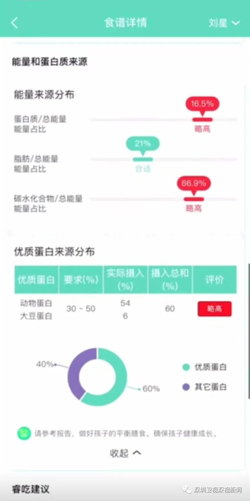 据深圳市慢性病防治中心肥胖与代谢病防控科主任熊静帆介绍,该平台可以实现监管、营养配餐、膳食评价与指导培训的功能,系统可以自动计算每餐的营养量,也能监督学生餐是否减盐减糖减油。