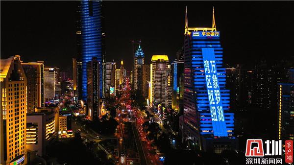 灯光,是营造夜间魅力最重要的一环。罗湖区通过对深南东路景观照明、“金三角”金融商业核心区灯光夜景、罗湖口岸楼宇景观照明进行提升,打造出具有罗湖地域性和标志性的特色灯光夜景,突显“万象罗湖”的夜间形象。