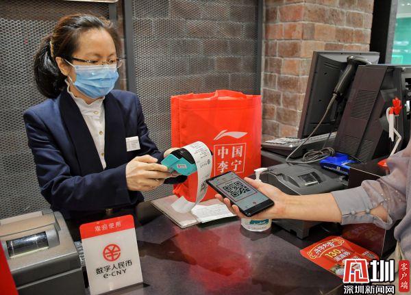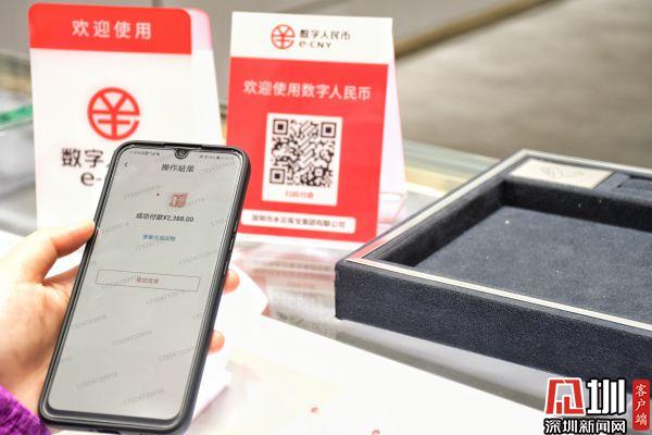 图为梁女士在水贝珠宝集团体验数字人民币消费实景。