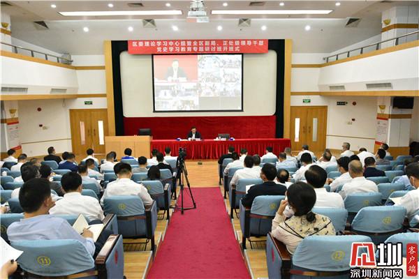 见圳客户端·深圳新闻网4月8日讯(记者 刘嘉敏/文 见习记者 邱婕/图)4月7日,罗湖区委理论学习中心组暨全区副局、正处级领导干部党史学习教育专题研讨班开班。此次研讨班的主要任务是,以习近平新时代中国特色社会主义思想为指导,深入学习贯彻习近平总书记在党史学习教育动员大会上的重要讲话精神,认真落实党中央决策部署和省委、市委工作安排,高标准、高质量推进党史学习教育走深走实,进一步统一思想、提高认识,从党的百年伟大奋斗历程中汲取前进的智慧和力量,高质量推进“湾区枢纽、万象罗湖”建设,以优异成绩迎接建党100周年。区委书记罗育德作动员讲话暨主题报告,区委副书记、区长刘智勇主持开班式。