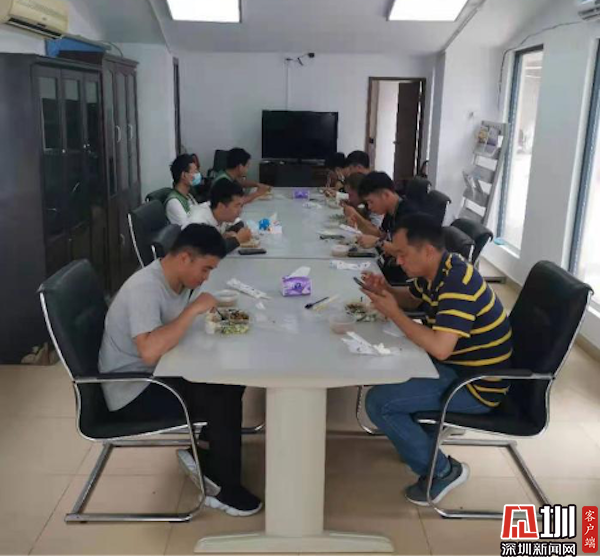 在e站就餐的快递员。