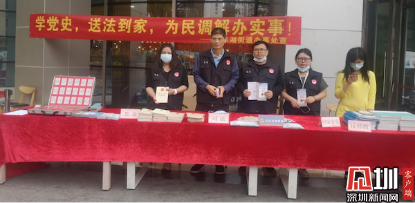 街道综合治理办联合驻点律师现场开展了“学党史、送法到家,为民调解办实事”活动,宣传与市民生活息息相关的法律知识,就群众关注的《民法典》提供法律讲解,并对前来咨询的群众送上了“身边的法律服务”。