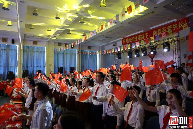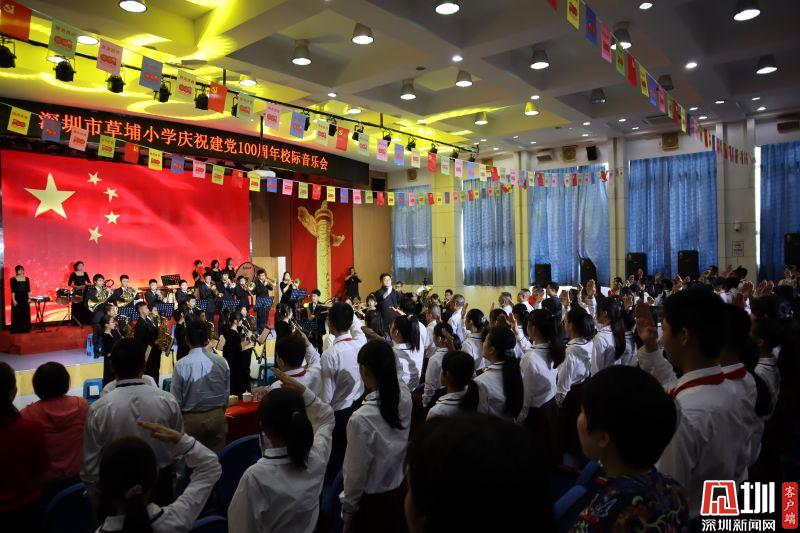 见圳客户端·深圳新闻网2021年4月22日讯(记者 刘晨 通讯员 童媛)“歌唱我们亲爱的祖国,从此走向繁荣富强......”当《歌唱祖国》的旋律响起,会场的师生不由挥起手中的国旗和党旗,深情地跟着旋律唱起来。为庆祝中国共产党百年华诞,重温光辉历程,歌颂伟大成就,传承红色精神,4月21日下午,由深圳市笋岗中学、翠北教育集团深圳市翠北实验小学、翠北教育集团深圳市草埔小学联合主办,翠北教育集团深圳市草埔小学承办的“初心犹寄红画舫”——庆祝建党100周年校际音乐会,在深圳市草埔小学三楼报告厅举行,音乐会同时进行了网络直播。