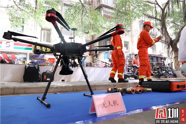 活动现场,宣传教育区、技能展示区、互动体验区、趣味比赛区等人头攒动,不时传来阵阵赞叹声、欢呼声。来自罗湖区森防大队、消防救援大队的队员们,向群众讲解无人机、液压切割机、消防机器人等救援设备、装备,演示森防油锯速切木头、风力灭火机吹砖头等等比武项目;居民体验使用干粉灭火器;美国心脏协会AHA导师向居民示范教学心肺复苏急救。趣味比赛区专门设置了防汛沙袋搬运、叠放竞速、简易担架搬运假人伤员、4*20M消防水带接力等独具防灾减灾特色的趣味比赛项目,吸引了众多社区居民积极参与。