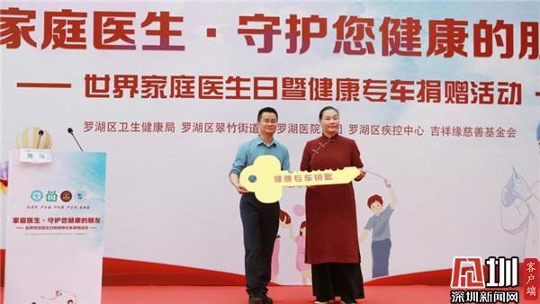 见圳客户端·深圳新闻网2021年5月19日讯(记者 彭桂红 通讯员 罗医宣)每年5月19日为“世界家庭医生日”,今年5月19日是第十一个“世界家庭医生日”。当天上午,在深圳市卫生健康委和区卫生健康局党工委指导下,罗湖医院集团联合翠竹街道办、深圳市社区协会、罗湖区疾控中心、慈善组织、爱心企业在罗湖医院集团翠竹街道社康中心举办了“5·19世界家庭医生日暨健康专车捐赠、义诊活动”。现场,罗湖区十佳家庭医生团队获表彰。
