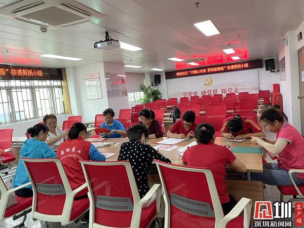 见圳客户端· 深圳新闻网5月21日讯(记者 郭含笑 通讯员 李珍凤/文 杨永振/图)5月20日下午,深圳市罗湖区清水河街道梅园社区党委、深圳市东西方社工服务社驻梅园社区党群服务中心开展了“巾帼心向党 剪纸画梅园”非遗剪纸小组活动。