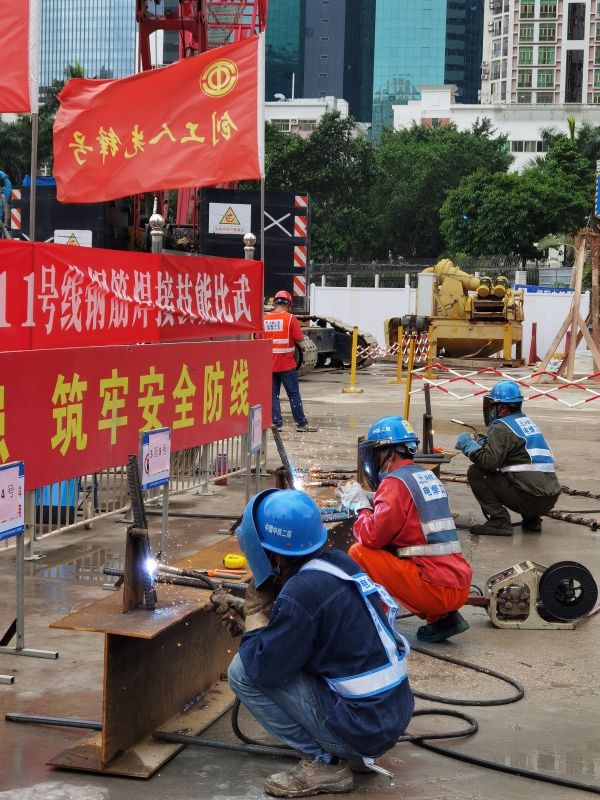 在工地现场,记者还偶遇了一场工地“大比武”,在阳光下,参赛选手你追我赶,不相上下,热情洋溢地将最好的技艺展现出来,队友们也欢呼加油鼓劲,热情比炙热的阳光还要高。