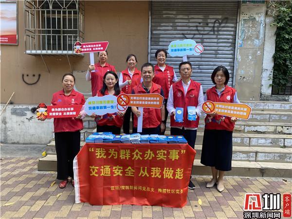 见圳客户端·深圳新闻网2021年5月22日讯(记者 李慧 通讯员 陈秋珊)为深入贯彻落实党史学习教育中发挥基层党组织和党员作用,将“为人民服务”的理念落到实处,5月21日,深圳市罗湖区清水河街道梅园社区党委联合共建单位读特、深圳新闻网党总支,在红岗西村公交站台周边开展“我为群众办实事-交通安全从我做起”平安宣传活动。