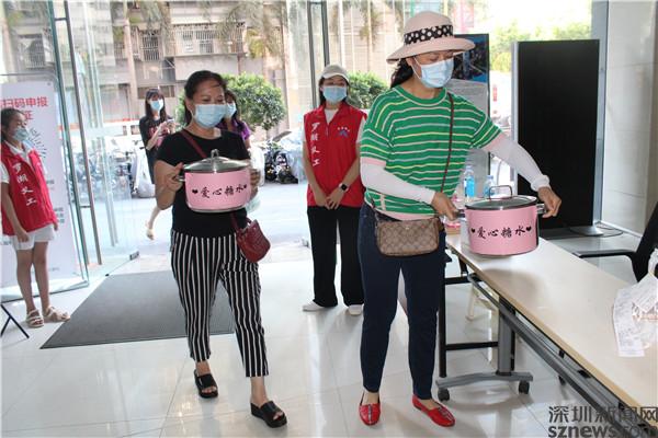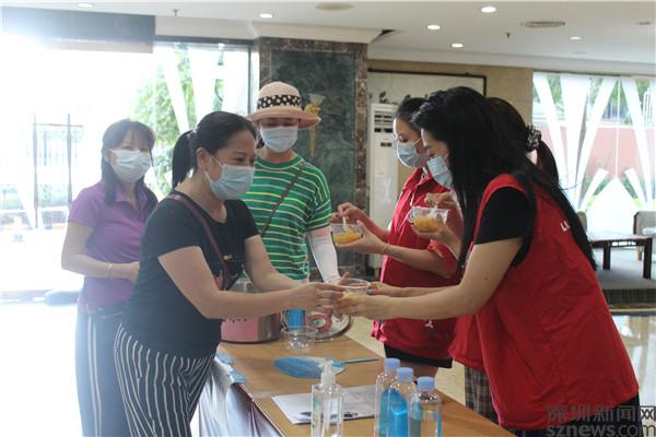 读特客户端·深圳新闻网2021年6月7日讯(记者 刘嘉敏 通讯员 杨纪欧)近日,炎炎烈日下,三位居民推着一辆平板车,车上放着两个大锅,锅里装着浓浓的糖水,正朝着老围花园的出入口走来,她们是罗湖区桂园街道老围社区老年人协会的会长蔡东风和委员赖秀文、陈艳芳,要给守卫在老围花园和名仕阁5个出入口的社区工作人员、社工和志愿者们以及保安员送上糖水,以表达他们对疫情防控的支持和参与抗疫的决心。