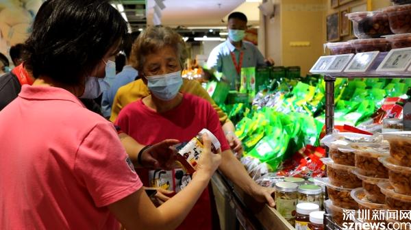 记者现场看到,在华润万家莲塘店二楼,一位店员拿起一瓶来自广西隆林的农产品,向顾客热情地介绍着。“妈,我觉得这个不错,颜色也不是那种很白的,看起来很放心。”顾客拿起一瓶百合干,和同行的母亲讨论了一下,就放进了购物篮内,身后不少顾客也拿起商品仔细打量,专柜上“罗湖区消费帮扶专区”的字样引人注目。