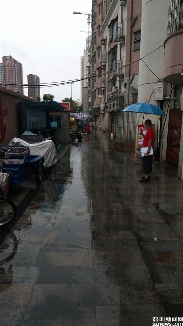 一把伞,一本台账,暴雨中“红马甲”仍然在各个小区出入口值守。