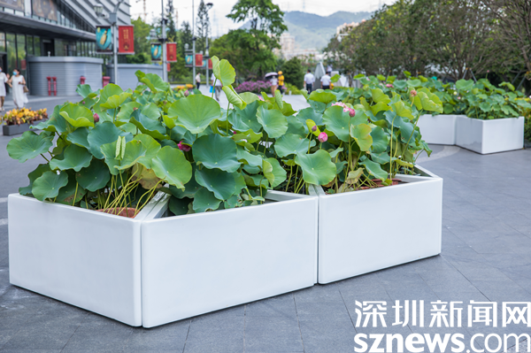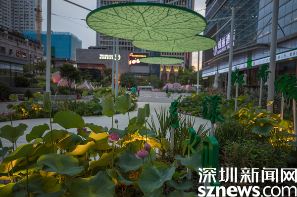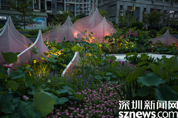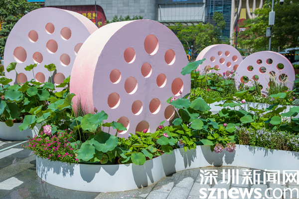 据介绍,街区以“花样水贝、红荷传情”为主题,提取荷花、莲叶等造型元素,应用多品种荷花打造艺术花境,充分展现荷花的艺术之美、文化之美。围绕水贝壹号、水贝金座、水贝银座、水贝国际等商圈建筑设置有红荷传情、荷叶青青、荷你藕遇、钻石莲心、荷荷美美、映日荷花等景点。