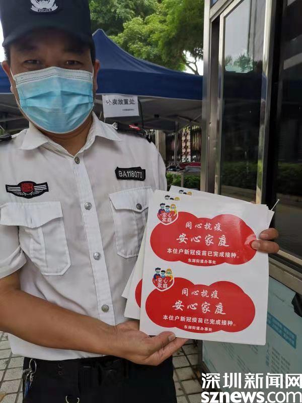读特客户端·深圳新闻网2021年6月23日讯(记者 郭含笑 通讯员 魏官明)“安心商户 本店员工已全部接种新冠疫苗”、“安心楼宇 本楼栋应接新冠疫苗居民已完成接种”。近日,走在深圳市罗湖区东湖街道的商业街区、社区小区,一个个新颖醒目的“安心标识”吸引了消费者和居民的目光。