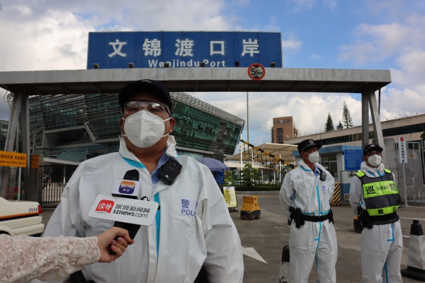 “文锦渡口岸每天进出关车辆达2000余次,为确保做好疫情防控和口岸通关秩序维持,警务室每天都会派出精干警力,虽然穿着防护服开展一整天工作又热又闷,但是没有一个人喊累,守护群众的生命健康安全是我们的职责”。硕大的汗珠从民警陈乐辉的鬓角滑落,他也顾不上擦拭,继续和其他执勤民警一起,落实好每一项防控措施。