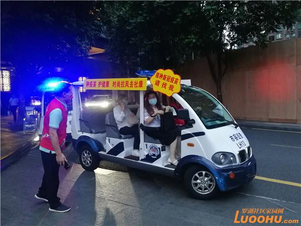 做完核酸检测的人听说有车送到疫苗接种点,纷纷为社区这种贴心服务点赞,高高兴兴坐上写有“种疫苗,护健康,时尚拉风去社康”标语的“专车”去接种。专车从闹市中穿街而过,又醒目又拉风,吸引了不少路人加入接种新冠疫苗的行列。