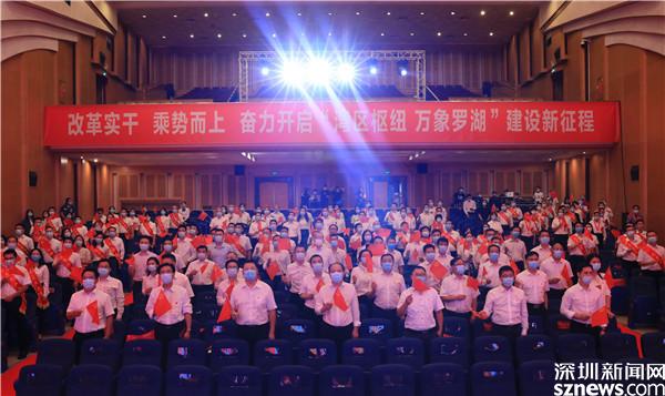 读特客户端·深圳新闻网2021年6月30日讯(记者 李慧 通讯员 易芬 李娴 黄敏婷 李琳琳)6月30日下午,罗湖会堂红色氛围浓郁,“担当湾区枢纽新使命 共创万象罗湖新辉煌——罗湖区‘两优一先’表彰大会”举行。罗湖区委书记罗育德,区人大常委会主任、党组书记周益川,区政协主席、党组书记吴裕中,罗湖区四套班子成员等领导出席。