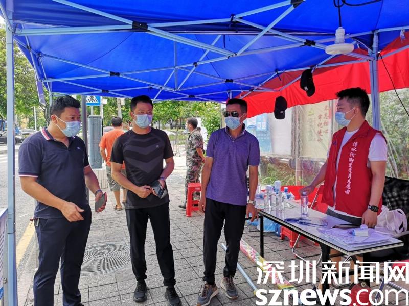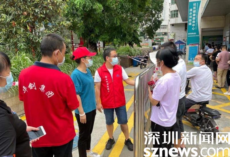 据了解,在本次疫情防控期间,罗湖区委下沉干部主要负责坭岗社区合围各个卡口,他们每天忙于测温、查验行程轨迹、查验健康码、出入车辆管理、回应居民咨询,为坭岗社区筑造一条坚实的防线。除此之外,来自深圳报业集团的工作队也坚守在清水河街道社康。他们通过耐心地指引居民截取行程码、健康码,来维护现场秩序,引导居民接种疫苗。从早上7点到晚上10点,甚至是12点,他们都和社区工作者一样,坚守在疫情防控的第一道防线,为社区疫苗接种推进工作提供了极大的帮助。这些下沉干部和工作队也得到社康工作人员和周边居民的点赞,清水河街道社康主任感叹说:“下沉干部和工作队的帅哥们真是给力啊!”