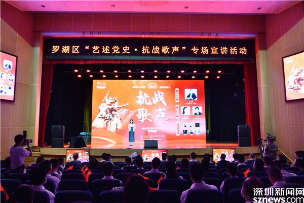读特客户端·深圳新闻网2021年7月8日讯(记者 刘嘉敏 通讯员 李娴 刘婉怡 陈彦嘉)7月7日,是“七七事变”纪念日,是一个铭刻历史的日子,当天下午,阵阵“抗战歌声”从罗湖会堂传出,一场别开生面的党史学习教育专场活动在此举行。市委党史学习教育第二巡回指导组组长林苗,区领导吕漫妮、姚文胜、吴欢、罗安娜出席,区宣传文化系统党员干部,区直各单位、各街道分管领导,艺术家代表等参加活动。
