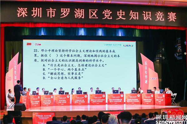 读特客户端·深圳新闻网2021年7月10日讯(记者 李慧 通讯员 刘文新 胡嘉雯 黄丽娜 陈章琦 )2021年,中国共产党迎来百年华诞。为深入贯彻落实习近平总书记在党史学习动员大会上“要做到学史明理、学史增信、学史崇德、学史力行”的重要讲话精神,进一步感悟党的思想伟力,坚定罗湖区党员干部、群众的信仰信念,7月9日,由罗湖区委党史学习教育领导小组办公室主办的“学党史知识庆百年华诞”党史知识竞赛举行。市委党史学习教育第二巡回指导组组长林苗、副组长曾丽芬及全体成员莅临指导本次比赛。罗湖区委副书记、组织部部长、政法委书记赖武,区委常委、宣传部部长吕漫妮,区委常委、区人武部部长邱雪平,区人大常委会副主任、党组成员王华生,区人民检察院检察长徐猛出席活动。