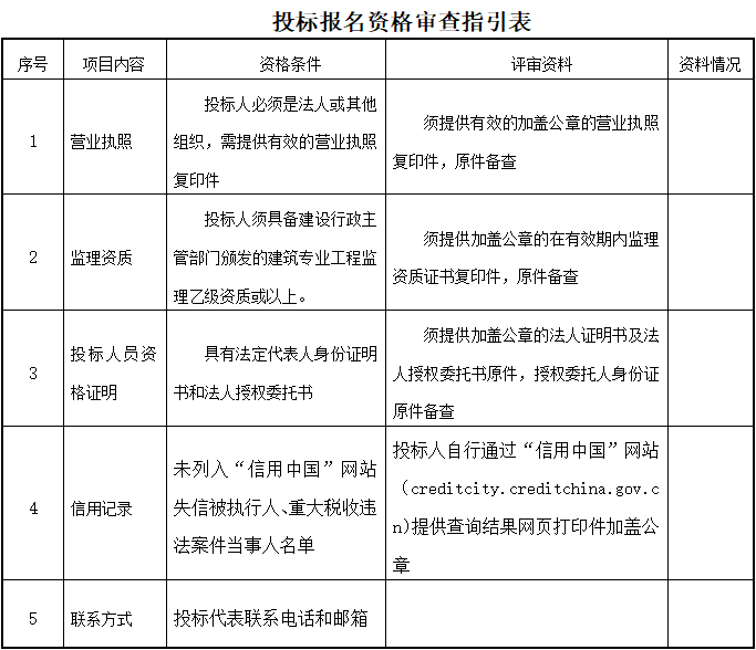 1.以上资格审查合格条件标准中如出现一处不符合要求,其投标报名将不被接受;
